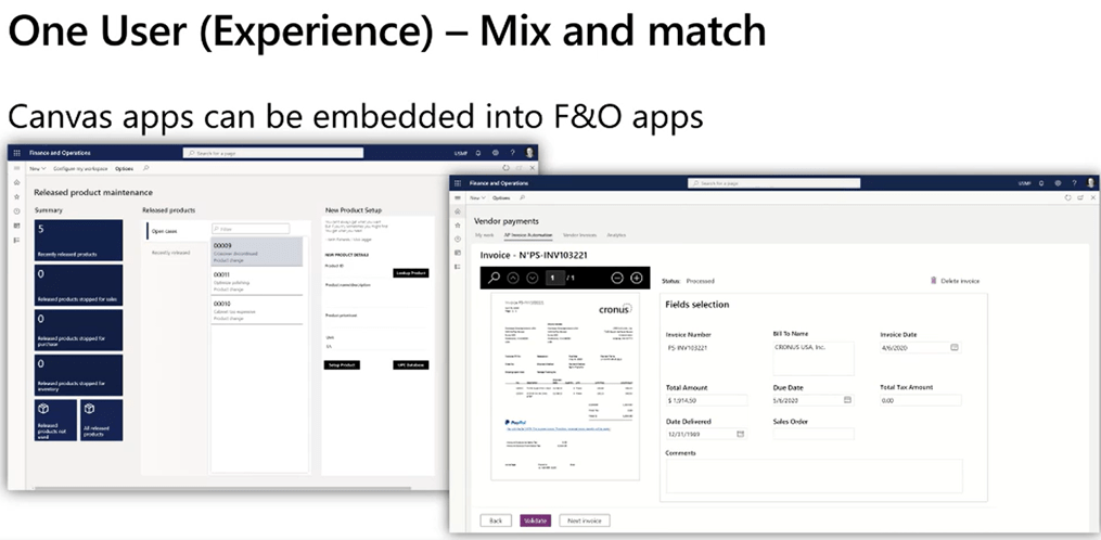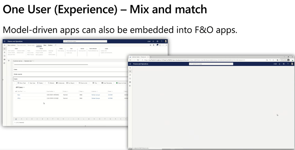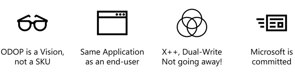 One User Runtime is about handling business data during runtime and creating end to end business process orchestration between front and back offices using 4 ODOP capabilities namely Dual-Write, data events, virtual tables, and business events. Using these capabilities, we can access data across applications such as accessing F&O data in Power Apps via Virtual tables in Dataverse. Now, the data structure of F&O and CE applications are different. For instance, we have legal entity concept in F&O but Business Unit concept in CE. Microsoft has covered some of those gaps and will be working on it under this vision.