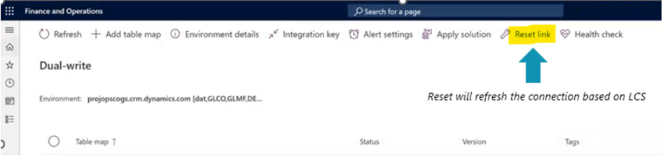 Power Platform linking will become one of the pre-requisites for dual write linking. Link and Unlink buttons will be replaced by Reset button. Microsoft is replacing these buttons to prevent linking one Dataverse instance from dual write and another from LCS. So, Dataverse instance can only be linked from LCS and can be reset from Dual write form in F&O.