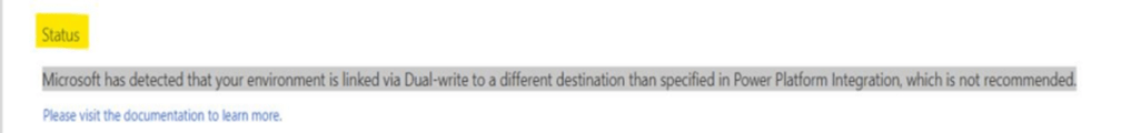 If there is mismatch in linked environments in Dual-write and LCS, then system will throw below error and Microsoft recommends to not ignore it.