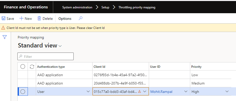 As shown above, you can set Low, Medium, or High Priority. During load on server, system will throttle Applications or Users with Low Priority first then Medium and at last High Priority. This is applicable to ODATA and Custom Services Based Integrations.