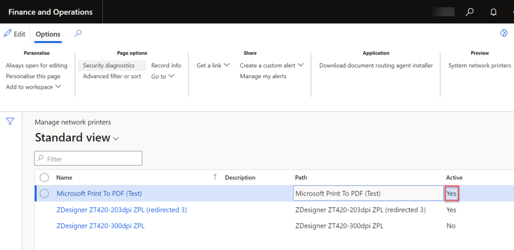 After registering the printer, it will be visible in D365 F&O. Activate the printer.