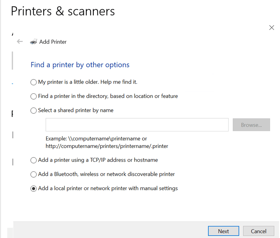 • Click on ‘The printer that I want isn’t listed.’