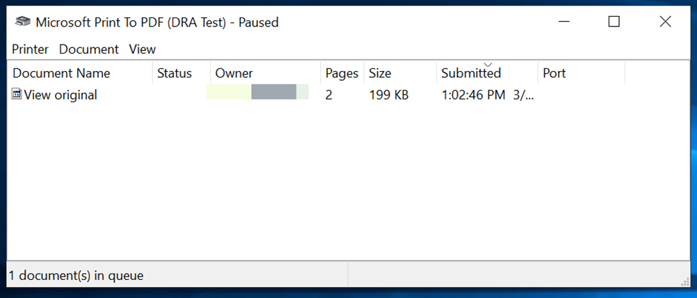 The document will be visible in print queue.